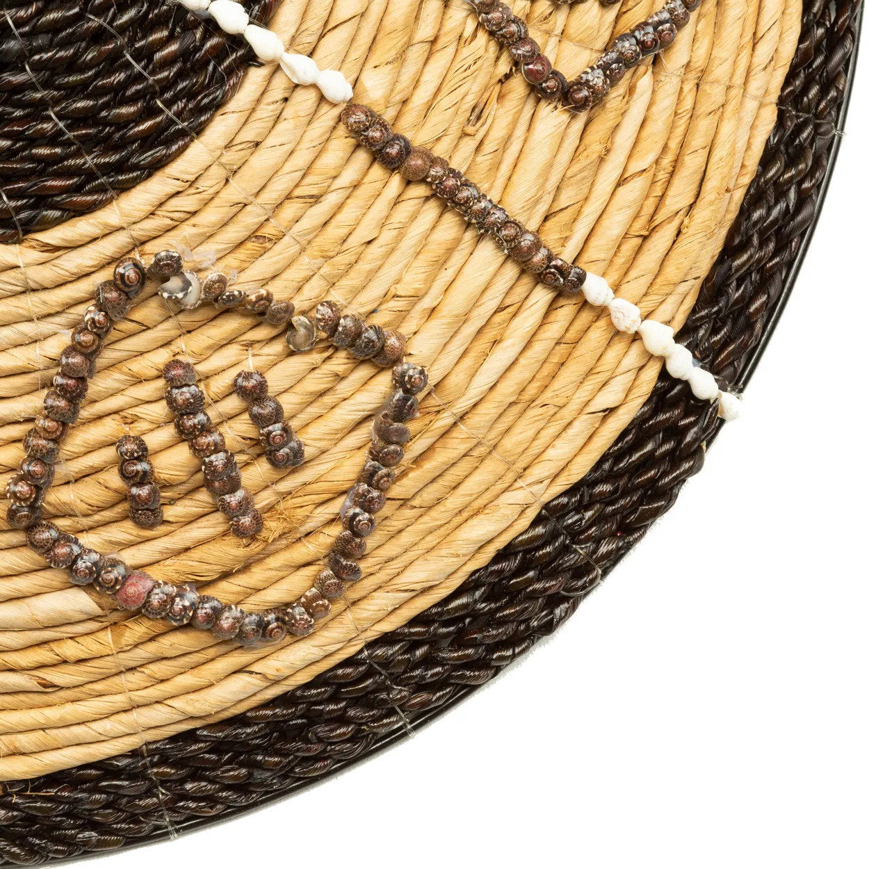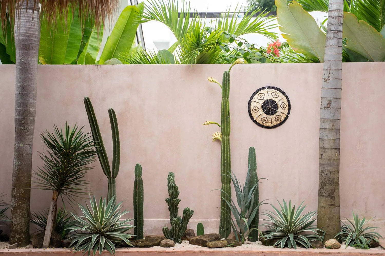 Transform your space with this boho wall decor. Crafted from natural banana leaf, this unique piece features intricate black graphic details, creating a bold focal point for any room.